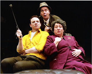 I did not know, going in, that this was the third part of a trilogy. I had not seen the first two installments, Murdered to Death and Secondary Cause of Death, and I did feel as though I had missed something. There were frequent references to past events that are not fleshed out, so I have to assume they are story threads from the first two plays. This was only a slight irritation, though, because the story presented here is generally self-contained.